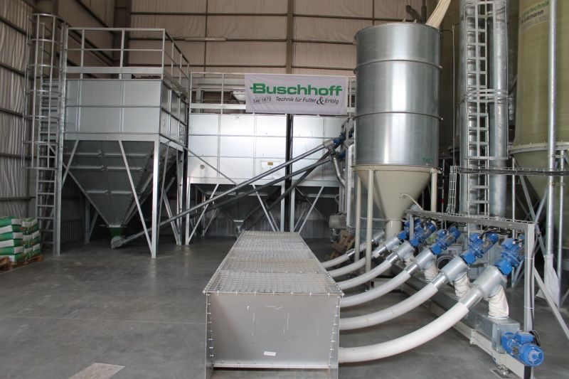 Весь процес відбувається автоматично. До речі, Buschhoff – одна з перших компаній, що розробила свою власну програму управління. Завдяки цьому мінімізується вплив людського фактору. Таким чином, зоотехнік вводить перелік рецептів, які необхідні, а оператор установки лише натискає кнопку «СТАРТ» та слідкує за виробництвом комбікорму. Для зручності найкраще оснастити силосні башти, де зберігаються компоненти, тензодатчиками для контролю рівня їх наповнення. Для власного комбікормового заводу не обов’язково будувати нову будівлю. На господарстві, зазвичай, знайдеться одна-дві будівлі, які не використовуються і в яких можна розмістити установку. За рахунок того, що компанія пропонує ставити поліестерові силосні башти знадвору, то в будівлі розміщується тільки центральний сегмент, і висота будівлі має бути не менше 5 м.