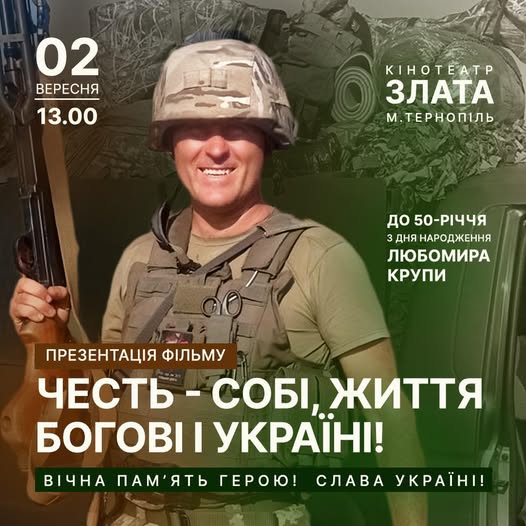 Рідні Героя та організатори поминального заходу запрошують вшанувати пам'ять про Любомира Крупу та взяти участь в презентації фільму про звитяжця.