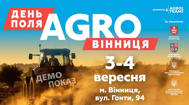 До уваги сільгоспвиробників, перробників та їхніх партнерів ПРОГРАМИ ДНЯ ПОЛЯ «АГРО ВІННИЦЯ» ТА ДЕМО-ПОКАЗУ СІЛЬГОСПТЕХНІКИ НА ЗАХОДІ