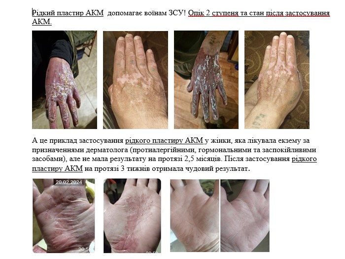 Рідкий пластир «АКМ» зареєстрований як косметичний регенерувальний засіб, згідно діючого законодавства і має офіційний висновок про безпечність та ефективність. Купуйте українське! Дбайте про себе та близьких!