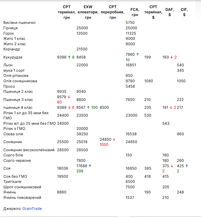 Середньозважені ціни закупівлі зернових та олійних культур в Україні на умовах CPT термінали, EXW елеватори, CPT переробники, FCA, CPT долар, FOB, DAF, CIF. Інформує AGRONAUT.
