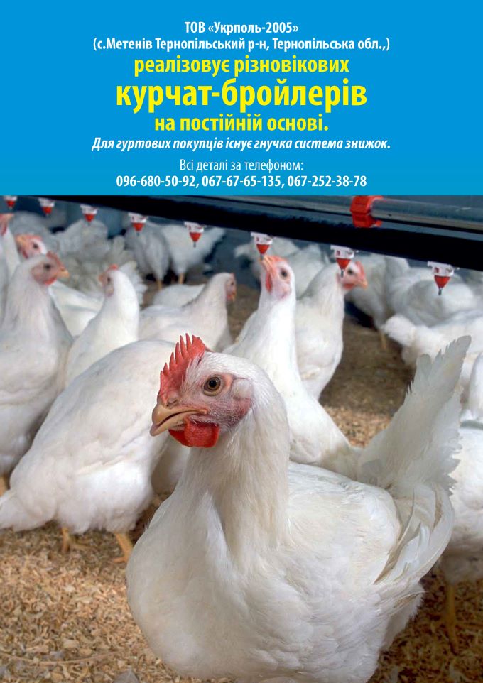 ТОВ «Укрполь-2005», що в селі Метенів поблизу Зборова на Тернопіллі, реалізовує різновікових курчат-бройлерів на постійній основі.