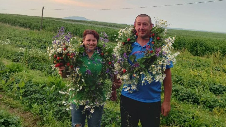 «Чомусь я люблю полуницю. Звичайно, важко, бо я працюю ще вчителькою внашому селі у початковій школі. Але у вчителів є відпустка 56 календарних днів. І всі ці дні проводимо в полі. Чоловік фермер, має землю в оренді. Він вирощує зернові, сою. А я думала щось розпочати своє. Зрозуміла, що треба працювати в полі, чоловікові допомагати, бути одною командою. І так разом працюємо удвох».