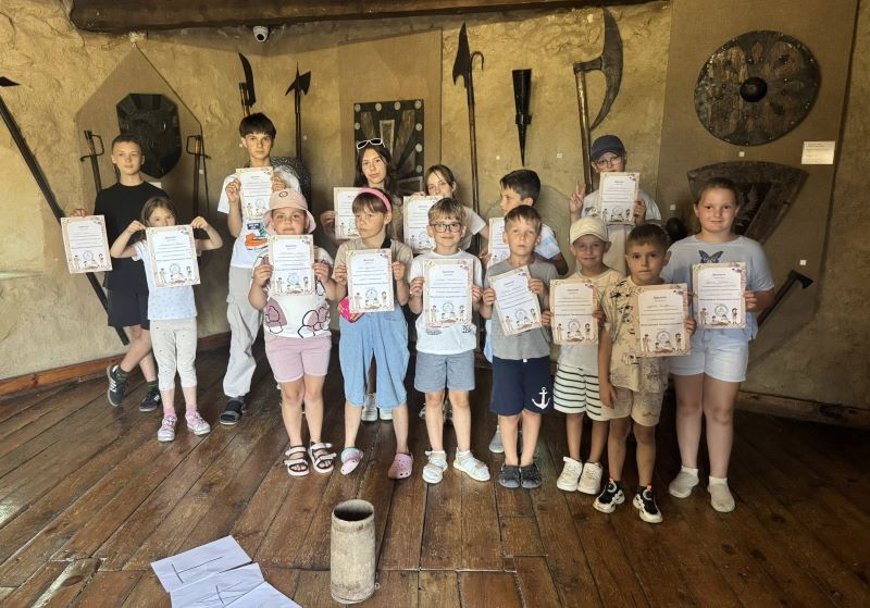 Спочатку учасники ознайомилися з професією археолога, дізналися що потрібно для розкопок, ознайомилися з артефактами замку, які знайдені на території і представлені у виставці «Археологія».
