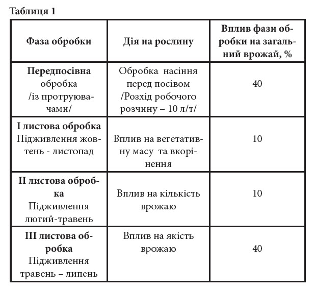Концептуальний підхід до застосування Добрива «ЖИВИЦЯ» приведений в таблиці 1.