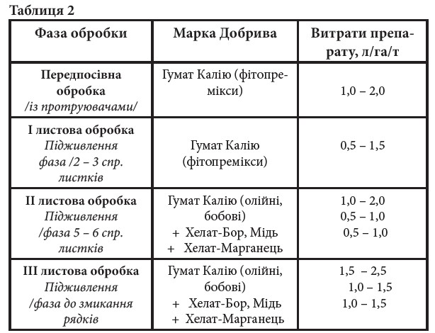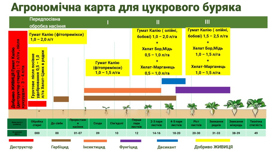 Для наглядного прикладу, в таблиці 2 приведена агротехнологія вирощування цукрового буряка з використанням Добрива «ЖИВИЦЯ».