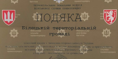 ДО БІЛЕЦЬКОЇ СІЛЬСЬКОЇ РАДИ НАДІЙШЛА ПОДЯКА ВІД ТЕРНОПІЛЬСЬКОГО ЗОНАЛЬНОГО ВІДДІЛУ ВІЙСЬКОВОЇ СЛУЖБИ ПРАВОПОРЯДК