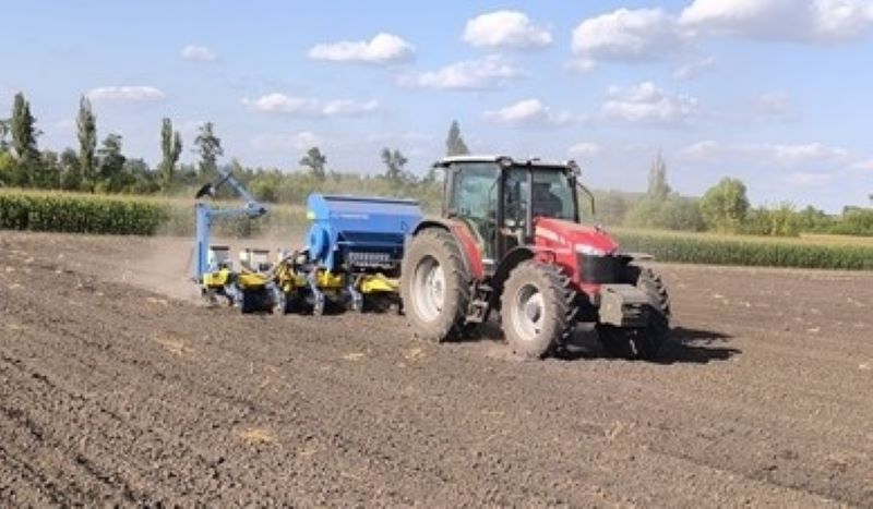 Посів проводили сівалкою точного висіву на 8 рядків із міжряддям 70 см та зміщенням на 35 см. У таких умовах використання маркерів неможливе, адже вони пошкоджують уже посіяне насіння. Саме тут точність навігації стала критично важливою.