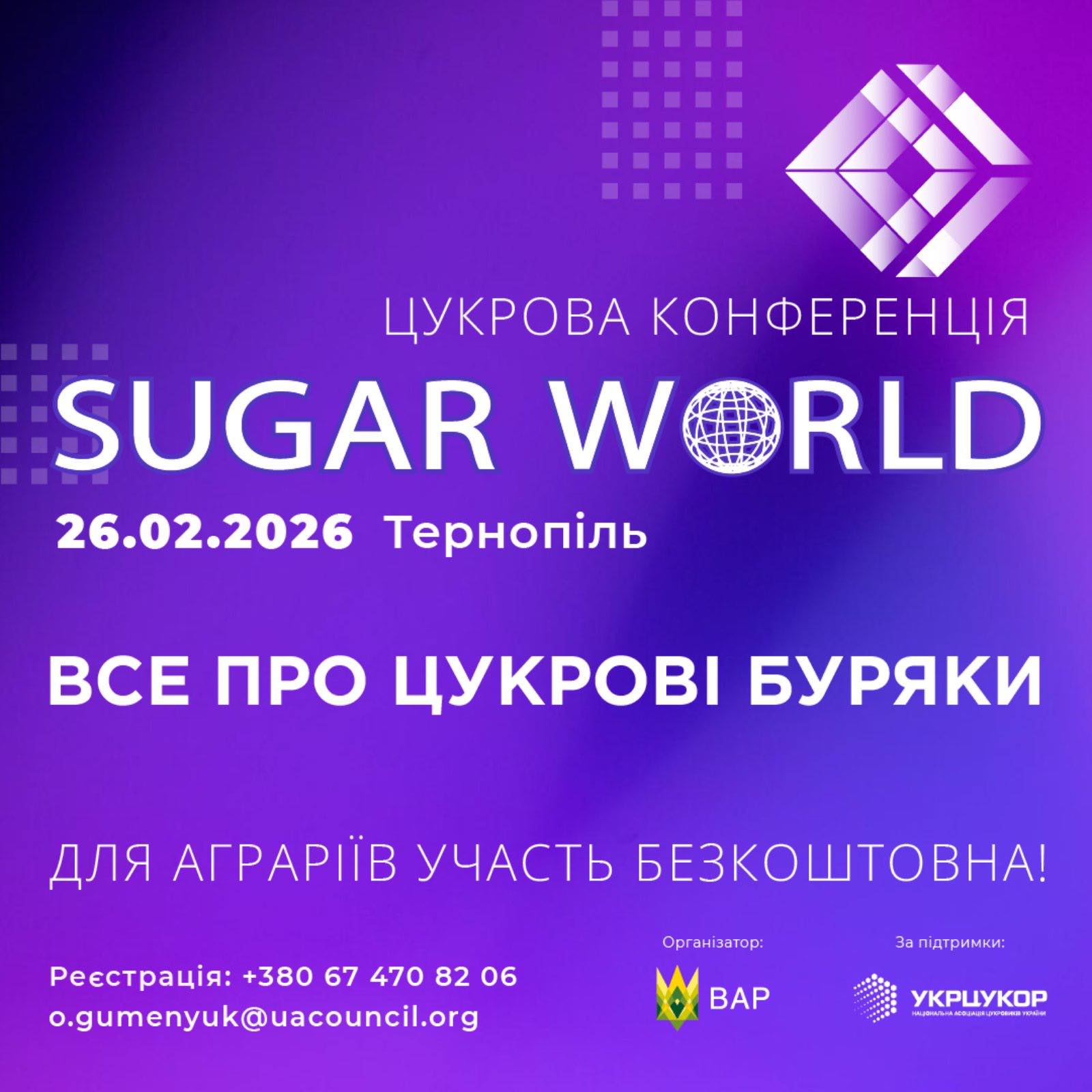 Не втрачайте можливість скоригувати свою стратегію перед виходом у поле. Реєструйтеся на SUGAR WORLD 2026 та розпочніть сезон озброєними знаннями та контактами!