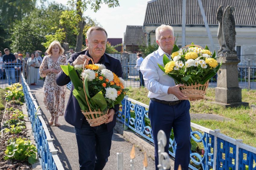 Першою зупинкою стало місцеве кладовище, де учасники презентації поклали квіти до могили отця Амвросія Крушельницького – батька Соломії. Високомистецький пам’ятник з італійського мармуру на його могилі встановлено стараннями доньки. Тут поклали квіти начальник Тернопільської обласної військової адміністрації В’ячеслав Негода, директор Департаменту культури та туризму Тернопільської ОВА Світлана Байталюк, сільський голова Дмитро Малик, працівники музею та місцевого самоврядування.