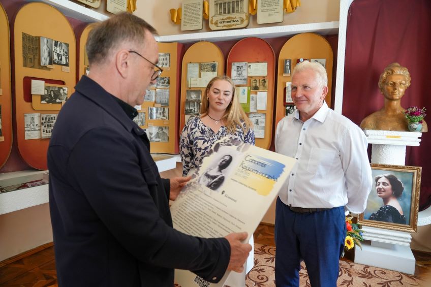 Фінальною точкою маршруту є родинний будинок Крушельницьких – нині Меморіальний музей Соломії Крушельницької. У цій хаті, що була проборством її батька, жила родина та минули дитячі роки співачки. Сьогодні тут зберігаються унікальні експонати – особисті речі Соломії та її батьків. Директор музею Галина Зюборовська розповіла присутнім про історію та експозицію.