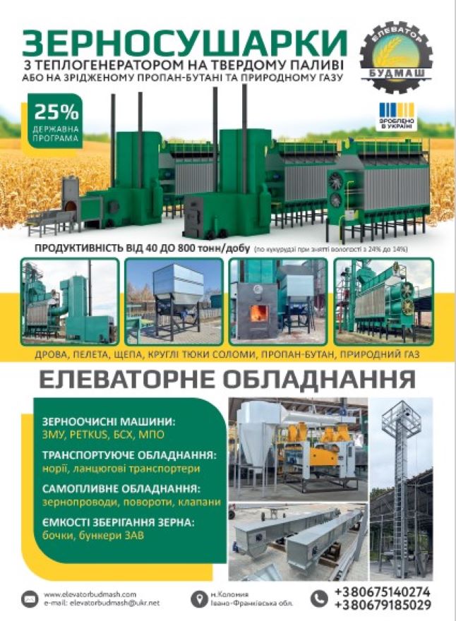 ПП «ЕлеваторБудМаш» – виробництво, продаж та монтаж сучасних зерносушарок ЗСМ, силосів для зберігання зерна, транспортерів, норій, зерноочисного та іншого.